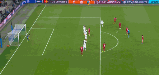 上半场补时阶段,索博斯洛伊用贴地斩的方式打进一粒任意球。