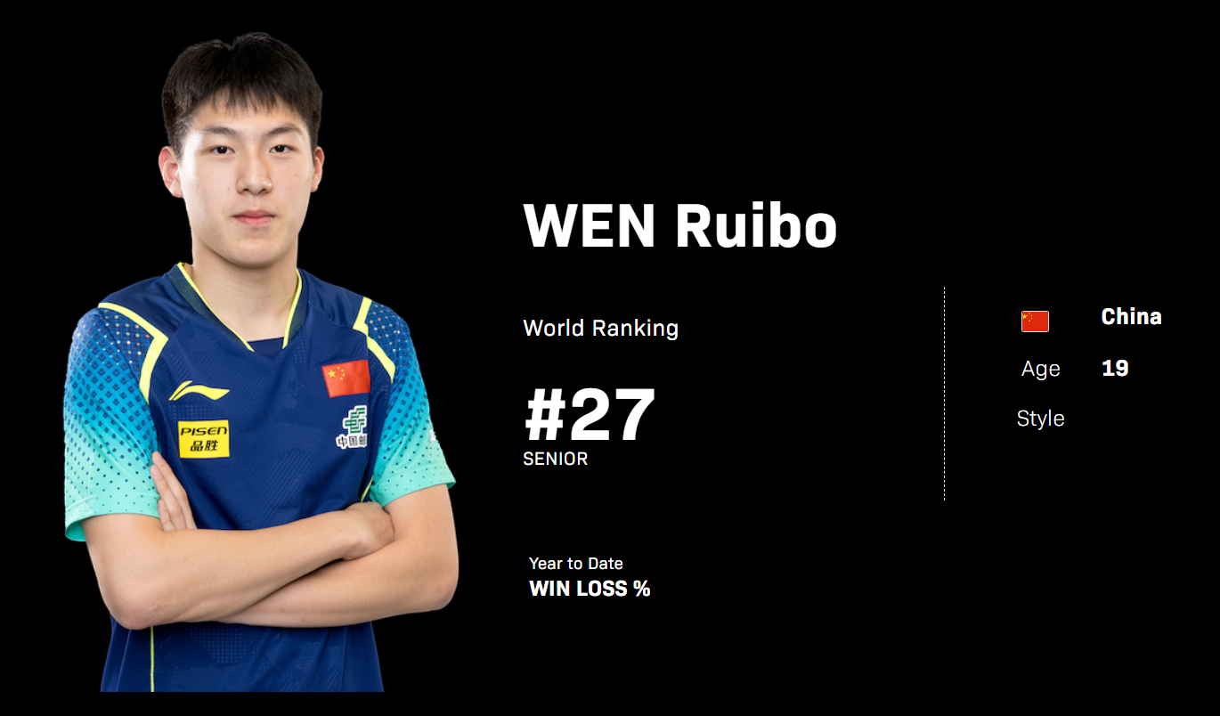 在新加坡大满贯之前,温瑞博在欧冠1/4决赛对上了乒坛T0级的选手樊振东,那场比赛温瑞博3-2爆冷击败了樊振东,这场比赛实际上就能说明温瑞博是一个有天赋的选手。(新加坡大满贯他首轮不敌张禹珍)