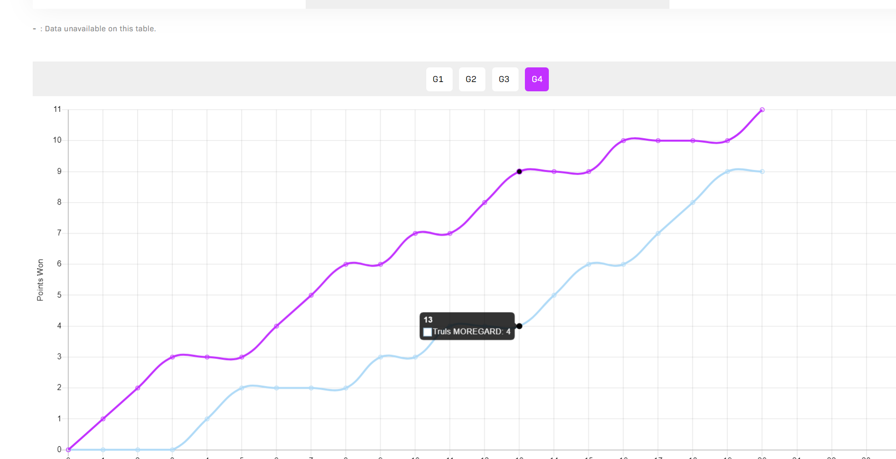 第四局开场温瑞博3-0领先,莫雷加德追到2-3,温瑞博6-2再度拉开,随后温瑞博10-6拿到赛点,莫雷加德追到9-10,但最关键的一分温瑞博还是拿下。